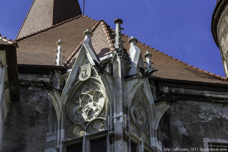 Сразу за кассой. Еще не войдя во двор замка. Деликатные таблички «16+». А кто полез внутрь — сами виноваты, вас предупреждали. Почти никто не сдерживается, заходя, – «твою мать!» в вариациях на разных языках мира слышно было даже во дворе. #5 Для тех, кому интересен «механизм», прилагаются подробные инструкции. #6 Замок был построен в середине 15 века Яношом Хуньяди, отцом венгерского короля Матьяша Корвина. #8 Те, кто был в Будапеште, про него, наверное, знают и там же могли видеть символ этого короля — вОрона с кольцом — над воротами замка Буда и на шпиле церкви святого Матьяша. В замке Корвинов воронов тоже можно увидеть в самых неожиданных местах. Эти черные птицы кроются даже в самом названии: прозвище короля «Корвин» значит «ворон». #9 Те, кто был в Будапеште, про него, наверное, знают и там же могли видеть символ этого короля — вОрона с кольцом — над воротами замка Буда и на шпиле церкви святого Матьяша. В замке Корвинов воронов тоже можно увидеть в самых неожиданных местах. Эти черные птицы кроются даже в самом названии: прозвище короля «Корвин» значит «ворон». #14 А во дворе должен был начаться «рыцарский турнир». Мы не стали его дожидаться, увидели только «репетицию». #18 После Матьяша Корвина у замка было много владельцев, самые известные — Габсбурги. После пожара в середине 19 века замок изменился — все деревянные конструкции (те, которые не сгорели) были заменены на более долговечные. Но, вот мост по-прежнему деревянный. #19 Замок Корвинов находится в городе Хунедоара. Людей немного. В центре города есть интересная церковь, но о ней как-нибудь в следующий раз. #20 Посетителей в «замке Дракулы» гораздо больше. #21 Да и сам замок как-то компактнее — может быть, общая площадь у него и не меньше, но из-за многочисленных «комнатушек» он выглядит каким-то тесным. #24 Хотя, замок Бран был построен немного раньше королевского — в конце 14 века. Его строили в качестве оборонной крепости тогдашние жители нынешнего Брашова (в Википедии прочитала, что 10 лет — с 1950 по 1960 годы — этот город носил название Орашул-Сталин (в честь Сталина). #25 Потом у этой крепости появились хозяева, в числе которых Влад Цепеш —«Дракула» … не значился. По легенде, в здешних лесах он любил охотиться и оставался иногда в замке Бран на ночлег. Из чего целую историю раздули, непонятно. #26 В начале 20 века этот замок перешел к королеве Марии, которая была внучкой российского императора Александра II и стала королевой Румынии, выйдя замуж за наследного принца Фердинанда. #32 Судя по тому, что сейчас в замке официально располагается Музей истории, скорее всего, часть интерьеров — это просто собрание мебели и предметов быта.