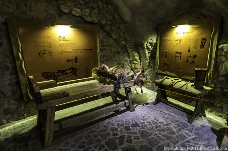 Замков в Румынии много. Наверное, каждый второй из них, – «Real Dracula Castle». Но, даже если не «real», то все-равно след Дракулы нет-нет, да и мелькнет. История замка Корвинов тоже без этого персонажа не обошлась — пишут, что именно в здешней темнице 7 лет держали свергнутого с престола «real Dracula» – валахского господаря Влада Цепеша. Может быть, именно поэтому замок начинается с… пыточной. Слабонервным и детям лучше туда не ходить и под кат тоже!